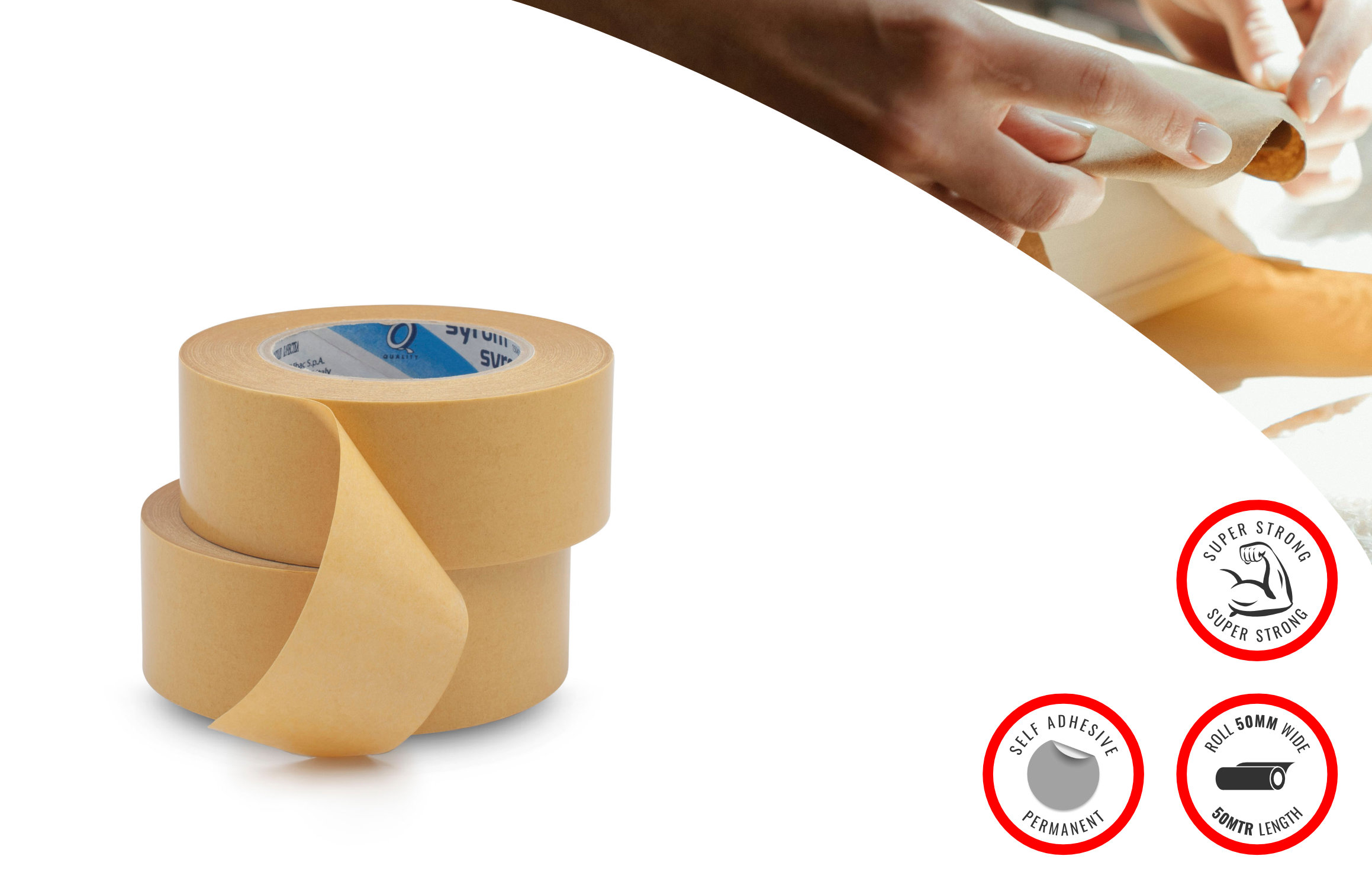Brown Paper Packing Tape 50mm wide x50mtr length, made of uncoated semi-crepe paper of brown colour saturated in natural rubber adhesive, very good adhesion qualities especially formulated for carton sealing and general packaging applications even to irregular surfaces and in low temperatures, 100% recyclable along with the carton, considered as an environmentally friendly product packaging solution.