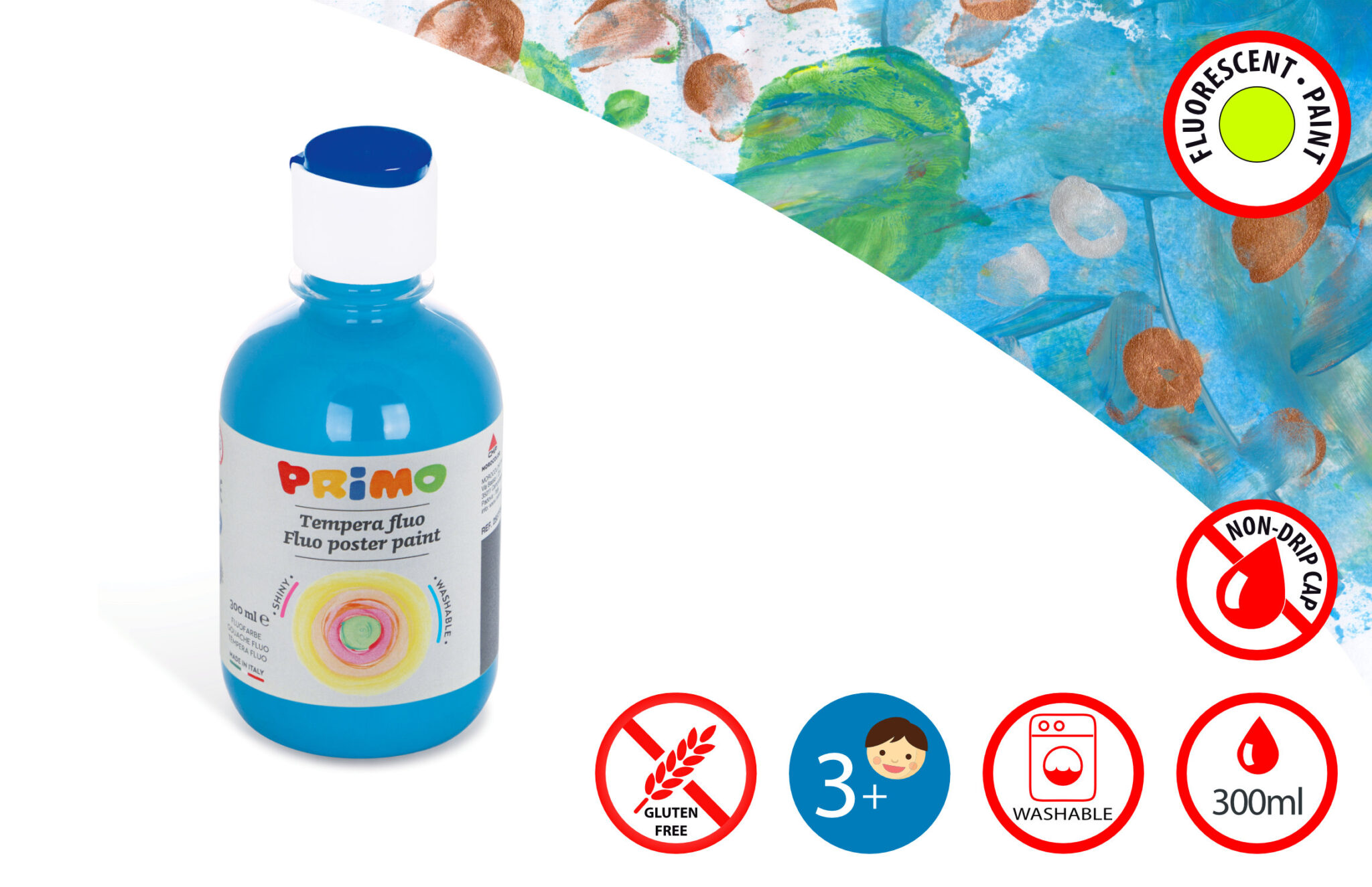 CMP Primo Poster Paint School 300ml colour Fluorescent 560 Turquoise, PET bottle with flow control cap, ready to use, washable, Made in Italy, code 255TF300560