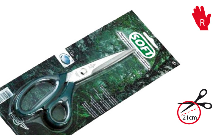 Faibo Scissors Professional 21cm stainless steel blade, SoftGrip, sharp pointed blade, with ergonomic shaped soft finger grip, right hand use, with adjustable blade tension via pivot screw, supplied in blister, 100% recyclable, ref. S21