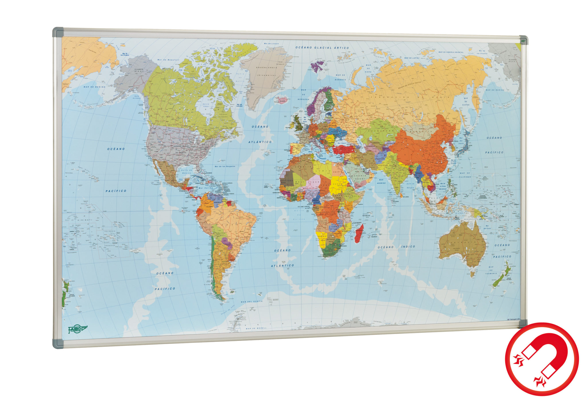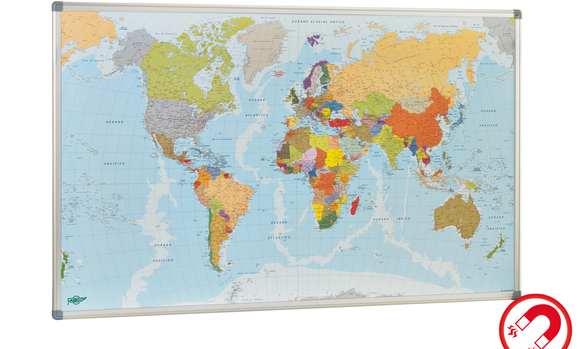 / Faibo Whiteboard WORLD MAP Mag drywipe 84x140cm Alutrim+tray